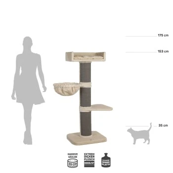 Die extra dicken sisalumwickelten Kratzstämmen kann Ihr Stubentiger nutzen, um seine Krallen genüsslich zu wetzen.