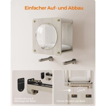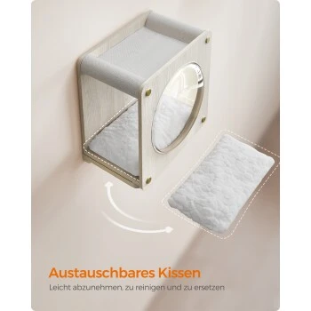 Diese Wand-Katzenhöhle bietet Ihrem pelzigen Freund einen privaten und gemütlichen Rückzugsort! Hier kann er ungestört ein Nickerchen machen und sein Reich von oben beobachten – alles sorgt für einen absoluten Komfort.