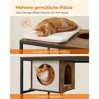 – Passen Sie die verstellbaren Füße an, um das Katzenhaus auf unebenen Böden stabil zu halten.