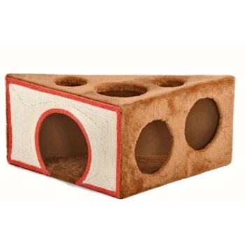Durch die verschiedenen Öffnungen (ca. 1x Ø 19, 1x Ø 15, 1x Ø 14, 1x Ø 8, 1x Ø 5 cm) der Katzenhöhle Chipsy lässt sich herrlich herumtoben. Hier kann aber auch Mensch und Tier auf seine Kosten kommen, indem Sie Ihrer Katze z. B. Plüschfeder oder das Lieblingsspielzeug vor die Öffnungen halten und somit ein extrem interessantes Spiel gestalten können. Nach dem turbulenten Teil dient die Höhle, mit dem weich bezogenen Boden, als idealer Platz zum Ruhen. Die vordere Fläche ist mit Sisalgewebe bezogen (ca. 45×26 cm) und lädt zur Krallenpflege ein. Die Lieferung erfolgt inkl. Aufbauanleitung.